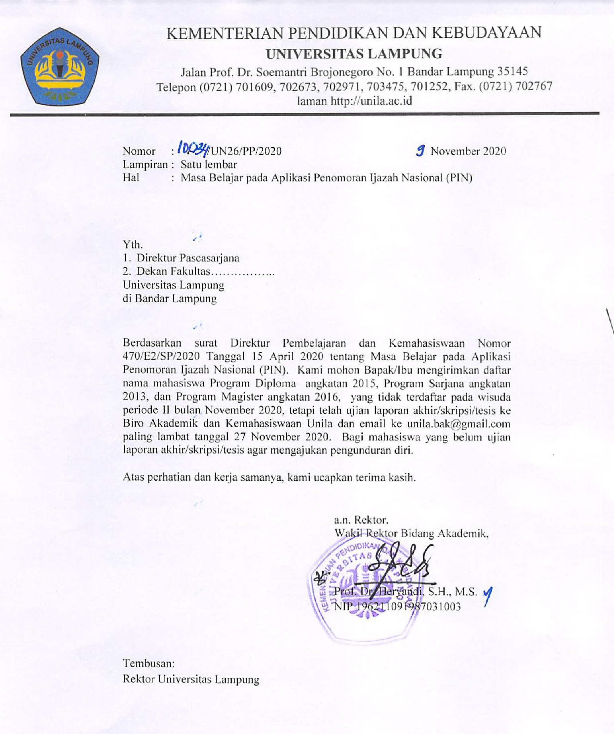 Surat Edaran Perpanjangan Pemberlakuan Pembatasan Kegiatan Masyarakat di Lingkungan Universitas Lampung Dalam Rangka Pencegahan dan Penanganan Corona Virus Disease 2019 (COVID-19)