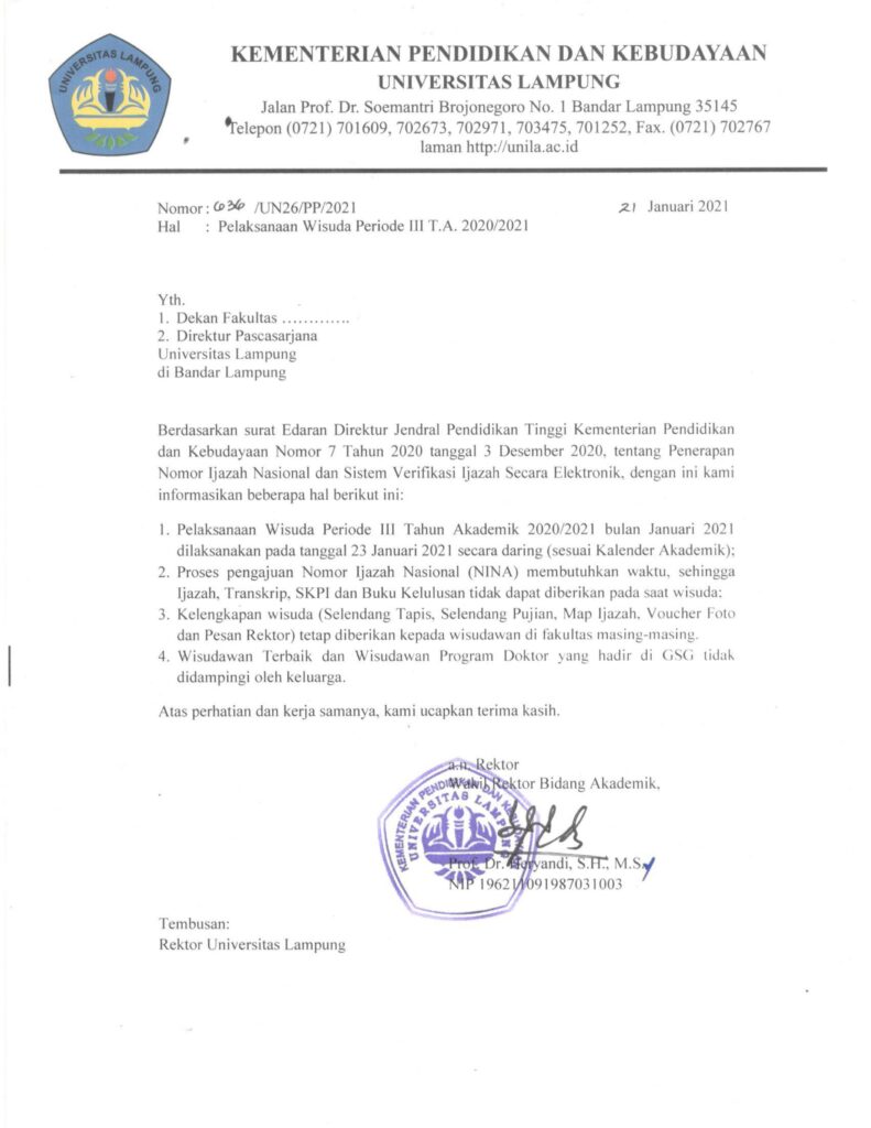 Penyelenggaraan Wisuda Periode IV Bulan Maret 2021 Tahun Akademik 2020/2021