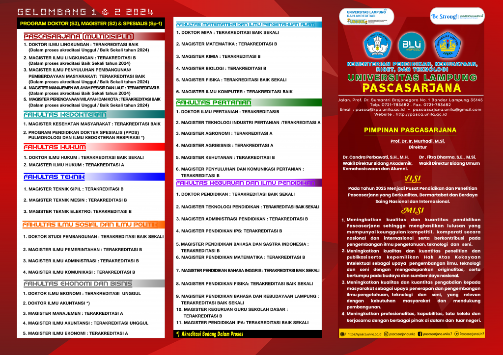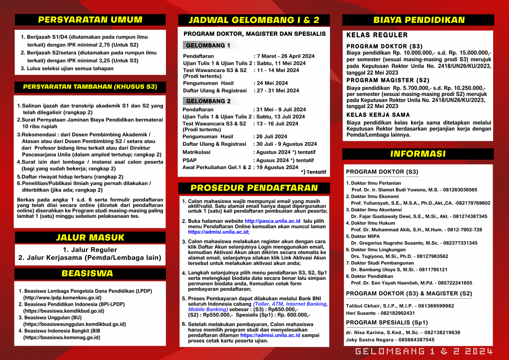 Pengumuman Pendaftaran Penerimaan Mahasiswa Baru (PMB) Program Doktor (S3) dan Magister (S2) Gelombang 2 Tahun Akademik 2024/2025 PMB 6 Juli 202430 Juli 2024 Admin PSPWK