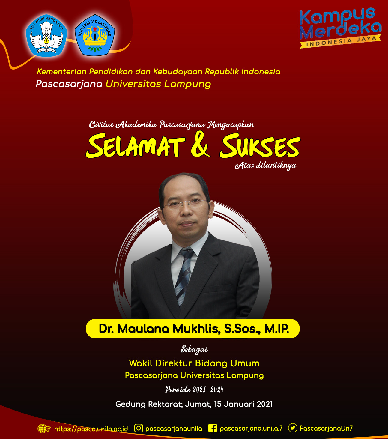 Ucapan Selamat dan Sukses atas Pelantikan Wakil Direktur Bidang Umum Pascasarjana Universitas Lampung Berita 18 Januari 202118 Januari 2021 Admin PSPWK Semoga dapat menjalankan amanah dengan baik dan diberi kemudahan dalam menjalankan tugas-tugasnya